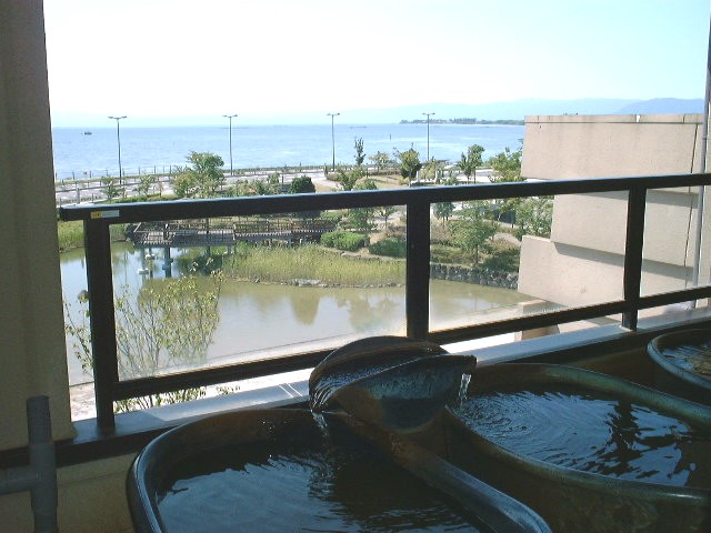 長浜ICより西へ10分の豊公園(長浜城址)のすぐ北東にある、風情ある1968年創業の和風3期階建ての宿(14室)。最上階にあり琵琶湖が一望できる長方形の木造り内湯・信楽焼の露天風呂3・貸切露天風呂あり。サウナなどはなし。レストランも気軽に利用できる。P10台。 |